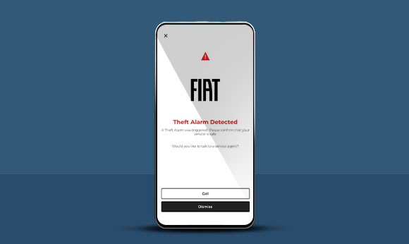 Esiet vienmēr informēts par Jūsu Fiat 500 brīdinājumiem, pateicoties pakalpojumam My Alert. Ja automobilis konstatēs kādus darbības traucējumus, būs aizdomas par zādzības mēģinājumu, piemēram, nesaskaņota vilkšana, Jūs nekavējoties saņemsiet paziņojumu savā Fiat lietotnē. Zādzības gadījumā varat zvanīt klientu atbalsta centram, lai lūgtu palīdzību, un, tiklīdz par zādzību būs ziņots policijai, tiks aktivizētas drošības funkcijas, tostarp automobiļa izsekošana.