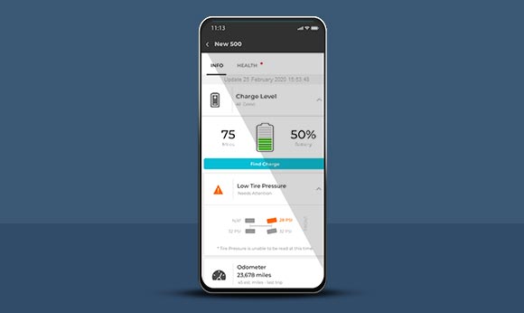Vai Jūs mēdzat aizdomāties, kas notiek zem dzinēja pārsega? Neuztraucieties, izmantojot My Car, varat iegūt reāllaika informāciju par sava Fiat elektromobiļa statusu, tostarp riepu spiedienu, odometra rādītāju un plānotās periodiskās apkopes laiku. Vienkārši atveriet Fiat lietotni vai izmantojiet informācijas un izklaides sistēmas skārienekrānu. Jaunajam Fiat 500 La Prima by Bocelli hečbekam nav nekā slēpjama no Jums.