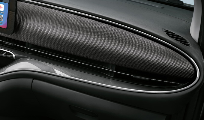 Augstākās kvalitātes priekšējā paneļa pieskārienam maigā apdare* uzsver izmaiņas salona dizainā, kas radītās domājot par ilgtspējīgāku nākotni. * Pieejams kā papildaprīkojums.